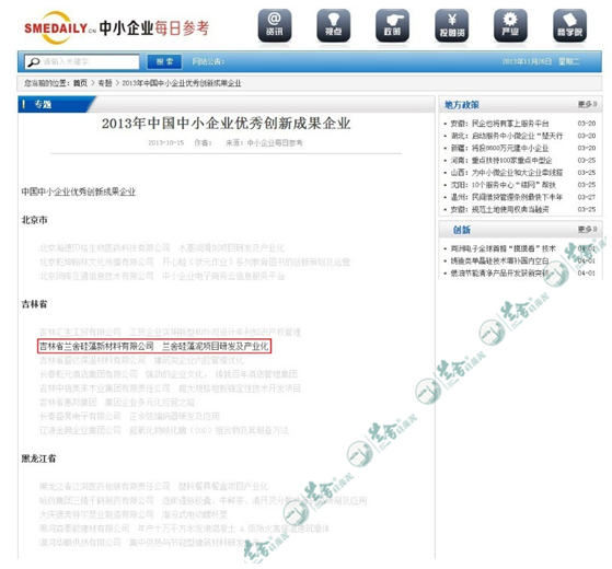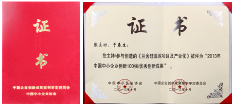 “中国中小企业协会”发布了2013年中国中小企业优秀创新成果案例创新百强企业,我公司创造的《兰舍硅藻泥项目及产业化》被评为“2013 中国中小企业创新100强/优秀创新成果”。这既是兰舍的光荣同时也说明硅藻泥行业已步入标准的产业化道路,在整个壁材装饰装修材料领域兰舍已经占据显著地位。