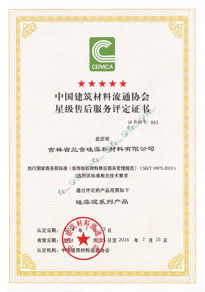 兰舍硅藻泥通过星级售后服务评定