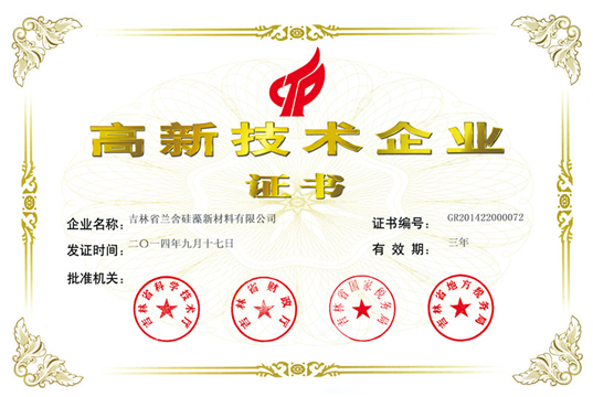 根据《高新技术企业认定管理办法》(国科发火[2008]172号)等相关规定,经吉林省高新技术企业认定管理工作办公室审查核定,全国高新技术企业认定管理工作领导小组办公室批复,吉林省兰舍硅藻新材料有限公司与一汽轿车股份有限公司、修正药业集团股份有限公司、长春轨道客车股份有限公司等企业通过高新技术企业认定。