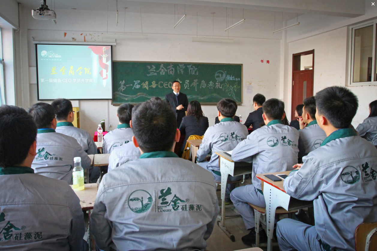 2015年3月17日,兰舍特训营第一届储备CEO学员开学典礼在长春市城建工程学院举办,吉林省兰舍硅藻新材料有限公司董事长张立功先生携领导班子部分成员莅临现场,与兰舍CEO学员们共同见证兰舍“黄埔军校”的开学盛典。