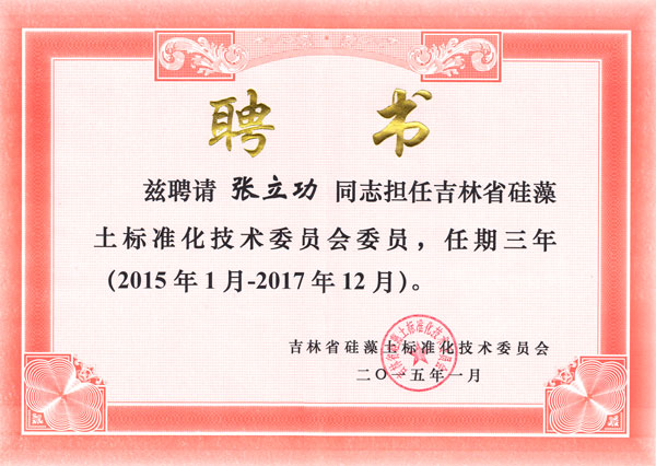 2015年4月28日,“吉林省硅藻土标准化技术委员会成立大会暨第一届全体委员会议”在吉林省长春市召开。吉林省兰舍硅藻新材料有限公司董事长张立功与吉林省新型建材产业公共技术研发中心主任肖力光、吉林大学教授蒋引珊、中国建筑材料科学研究总院主任冀志江一同被聘为委员会专家委员。